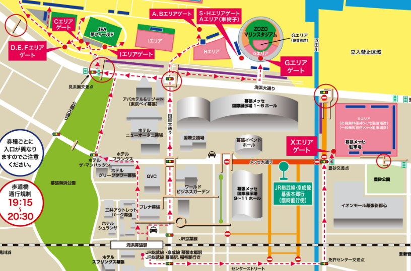 また花火大会当日は、幕張メッセ周辺で18時から22時30分まで交通規制が行われます。