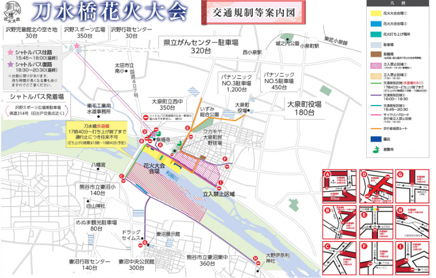 刀水橋花火大会での屋台の出店場所や駐車情報、日程などご紹介してきました。