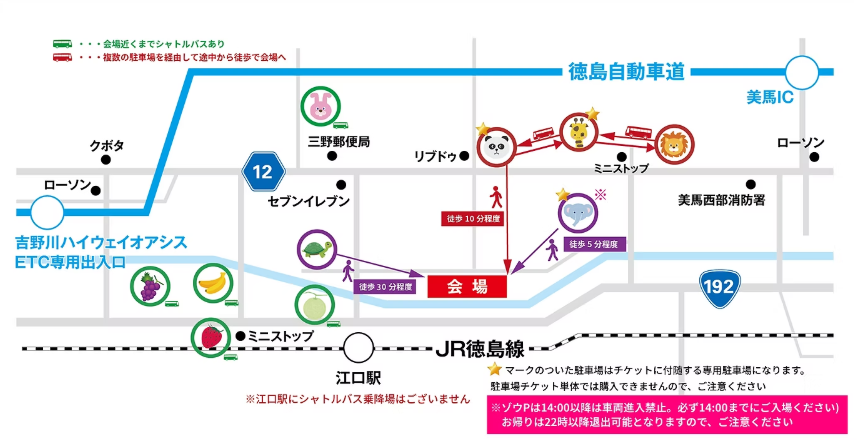 • にし阿波の花火大会での駐車場はありますが、駐車場券だけでは駐車場に入れません。花火観覧チケット購入の上駐車場券を購入してください。