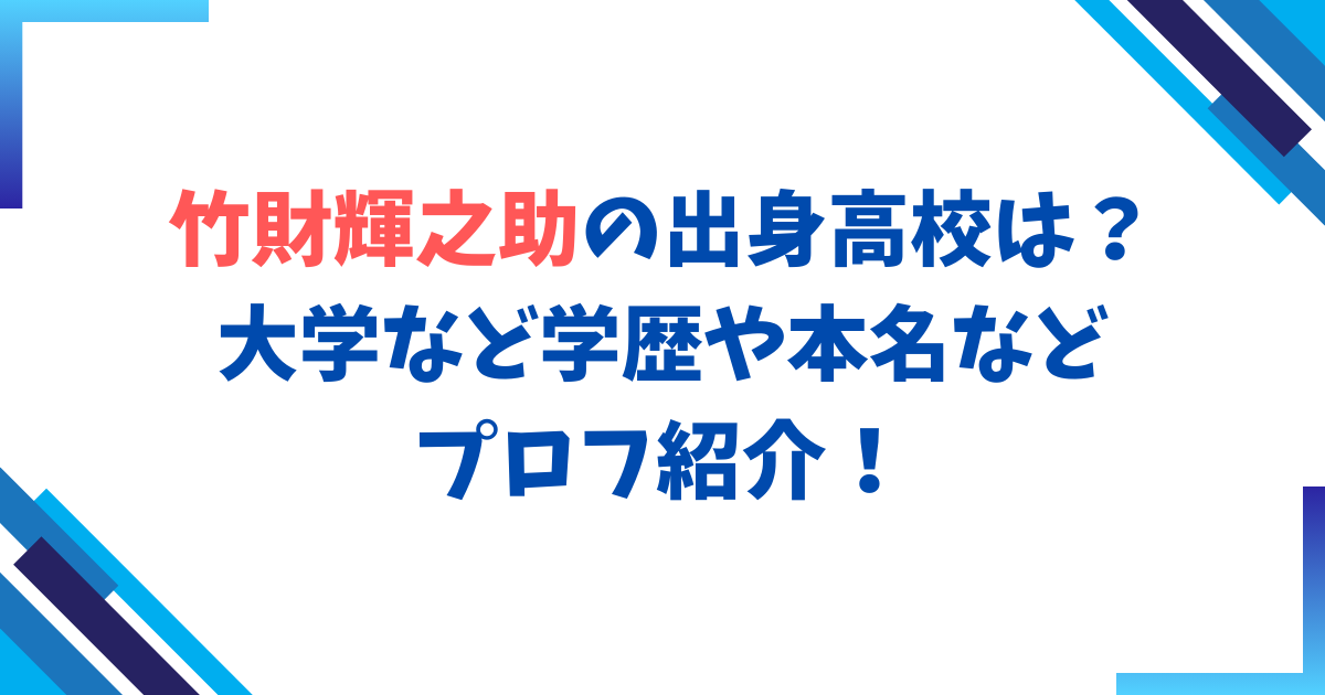 竹財輝之助の出身高校は?大学など学歴や本名などプロフィールを紹介してきました。