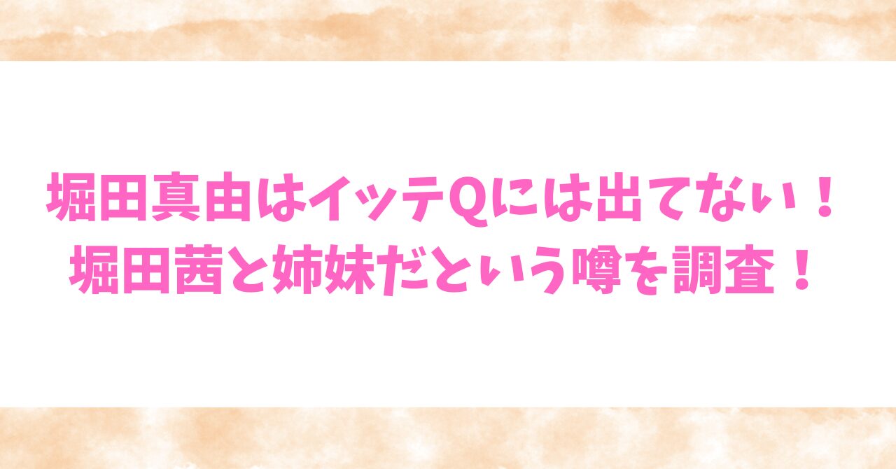 堀田真由さんは、「世界の果てまでイッテQ!」に出演していませんし、堀田茜さんと姉妹でもありませんでした。