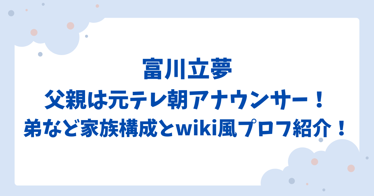 • 富川立夢さんの父親は、元テレビ朝日アナウンサーの富川悠太さんです。