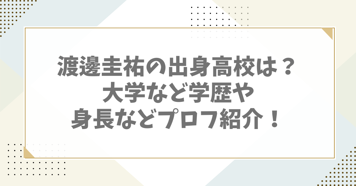 今回は、渡邊圭祐さんの出身高校、大学や経歴、身長などプロフィールをご紹介していきます。