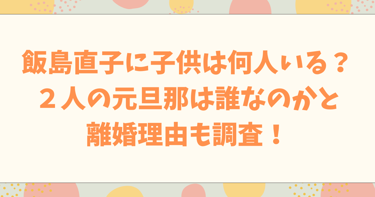 また、飯島直子さんにお子さんがいるという噂があることから、今回は飯島直子さんに子供は何人いるのかと2人の元旦那は誰で離婚理由は?を調べてみました。