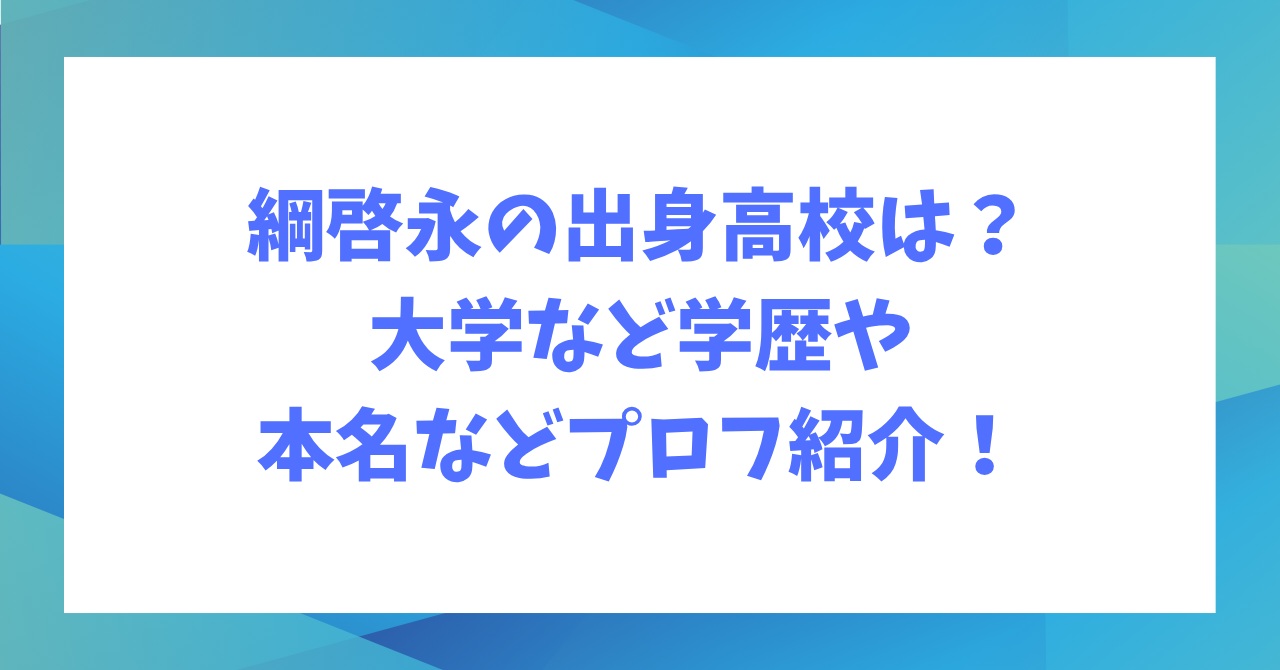 - 綱啓永さんの本名は、同じで「綱啓永」です。