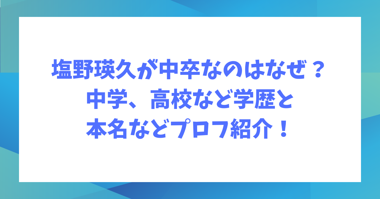 今回塩野瑛久さんが中卒なのか、中卒だとしたらなぜ進学しなかったのかを調べてみました。
