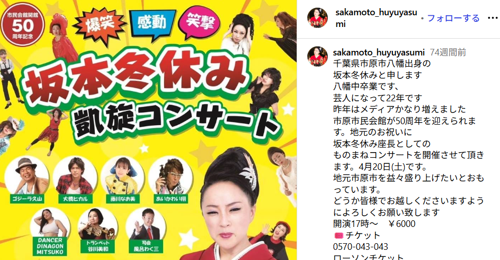 ものまねタレントとして活躍中の坂本冬休みさん。