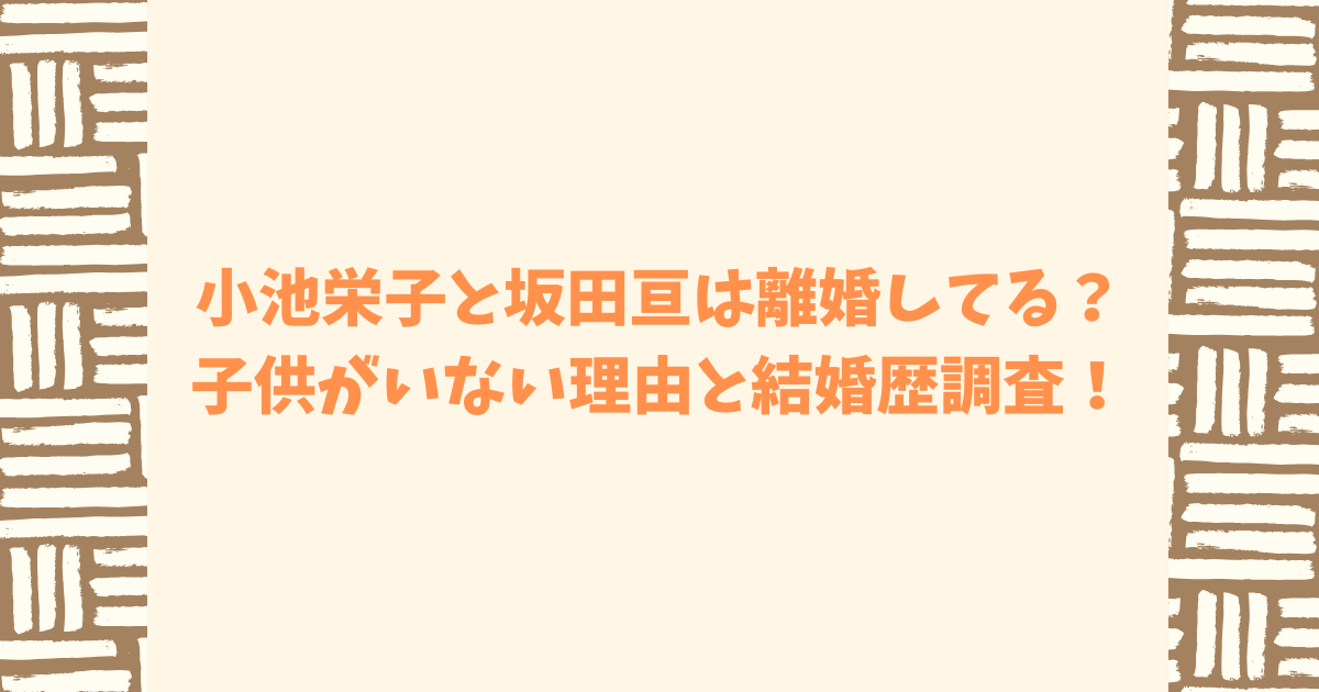 - 小池栄子さんと坂田亘さんの離婚の噂はデマで、現在も夫婦仲は良好のようです。