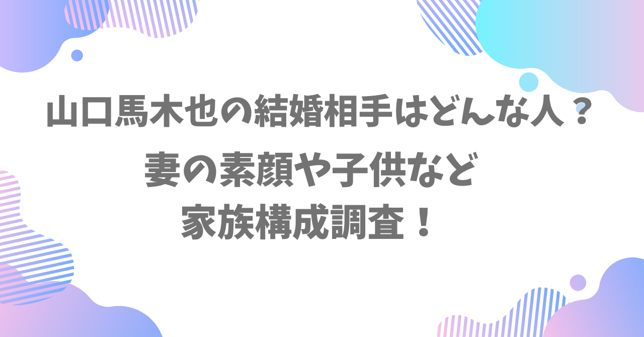 結論から言うと、山口馬木也さんはご結婚されており、奥様がいらっしゃいます。