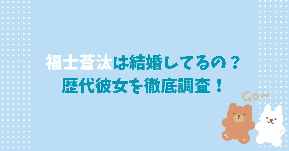 福士蒼汰は結婚してるの?歴代彼女を徹底調査してきました。