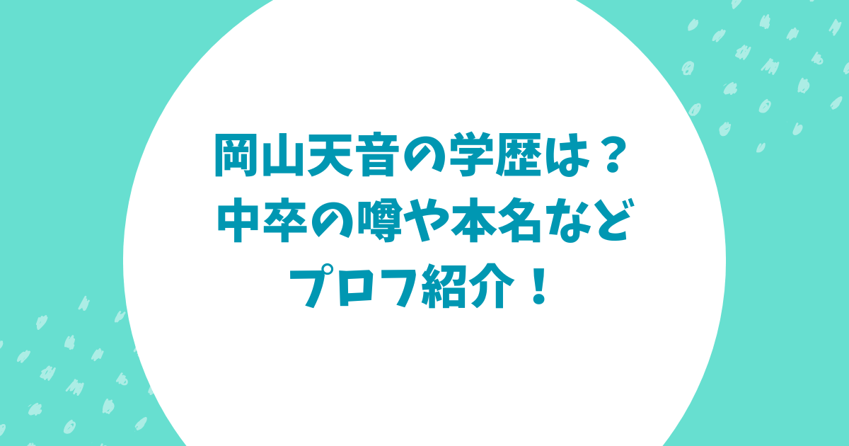 - 岡山天音さんの最終学歴は中学校卒業で、高校には進学していません。