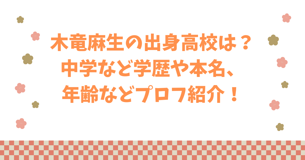 木竜麻生の出身高校は?中学など学歴や本名、年齢などプロフ紹介してきました。