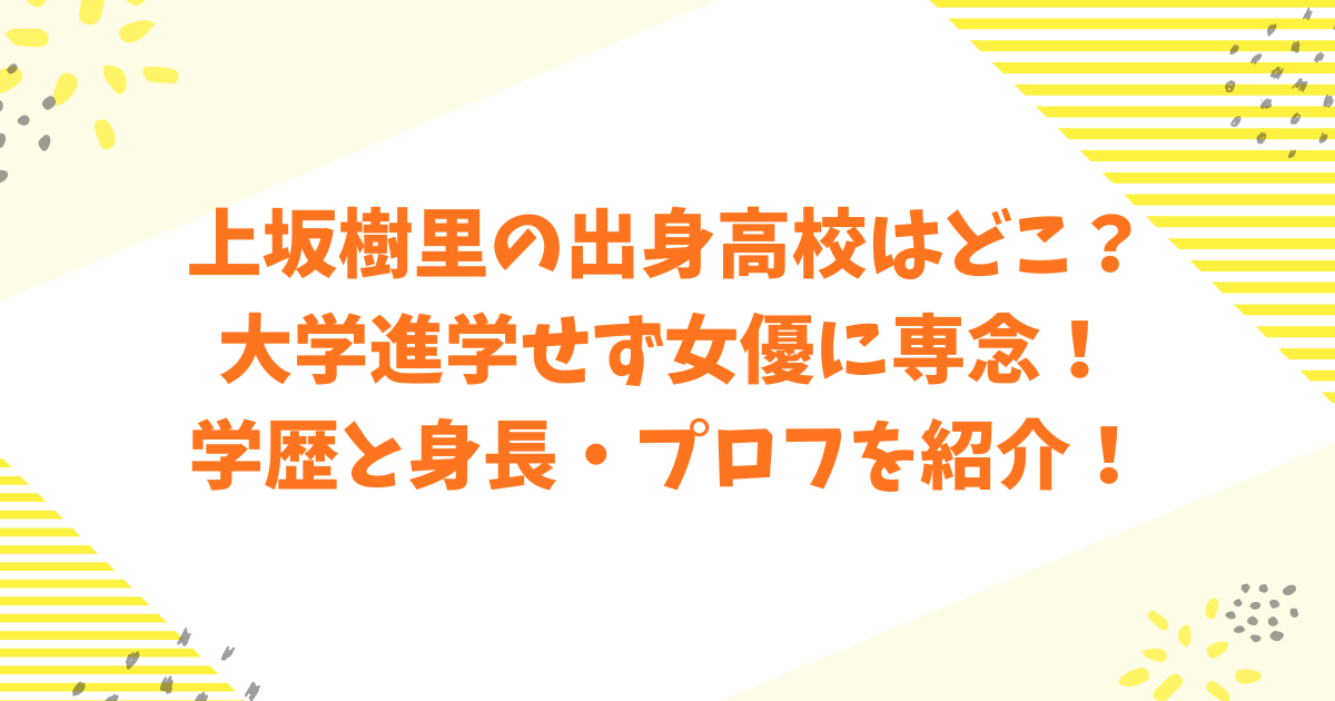 • 上坂樹里さんは、女優業に専念するため大学へ進学しませんでした。