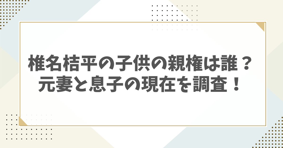 今回は、椎名桔平さんのお子さんの親権がどちらにあるのか、元妻と息子の現在の様子について、整理してご紹介していきます。