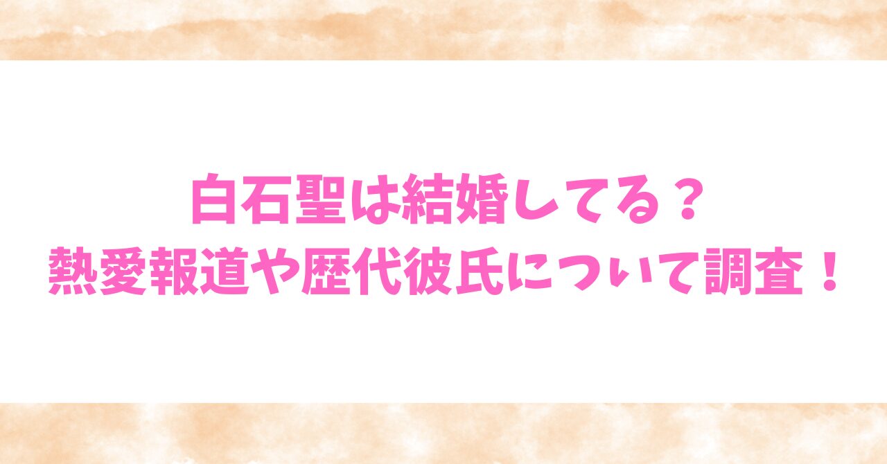 白石聖は結婚してる?熱愛報道や歴代彼氏について調査!