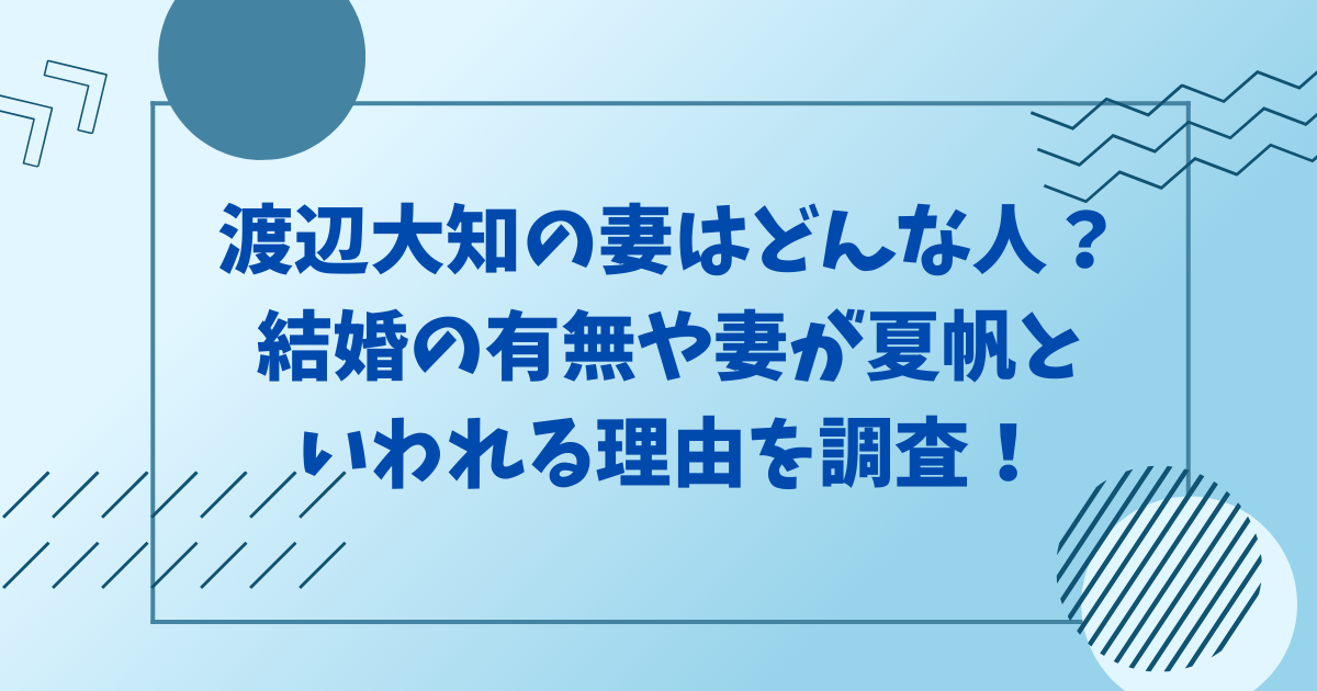 そんな渡辺大知さんは「結婚してるの?」「妻はどんな人?」と気になる方も多いのではないでしょうか。